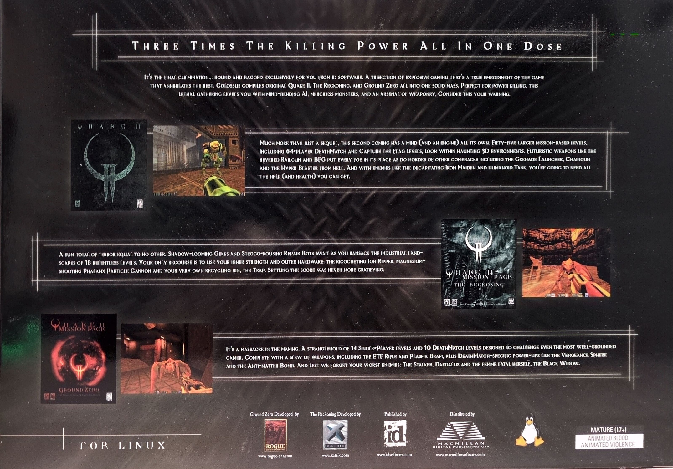 Macmillan Digital Publishing distributed a Linux version under the name “Quake II: Colossus” (but this version did not contain the Netpack)