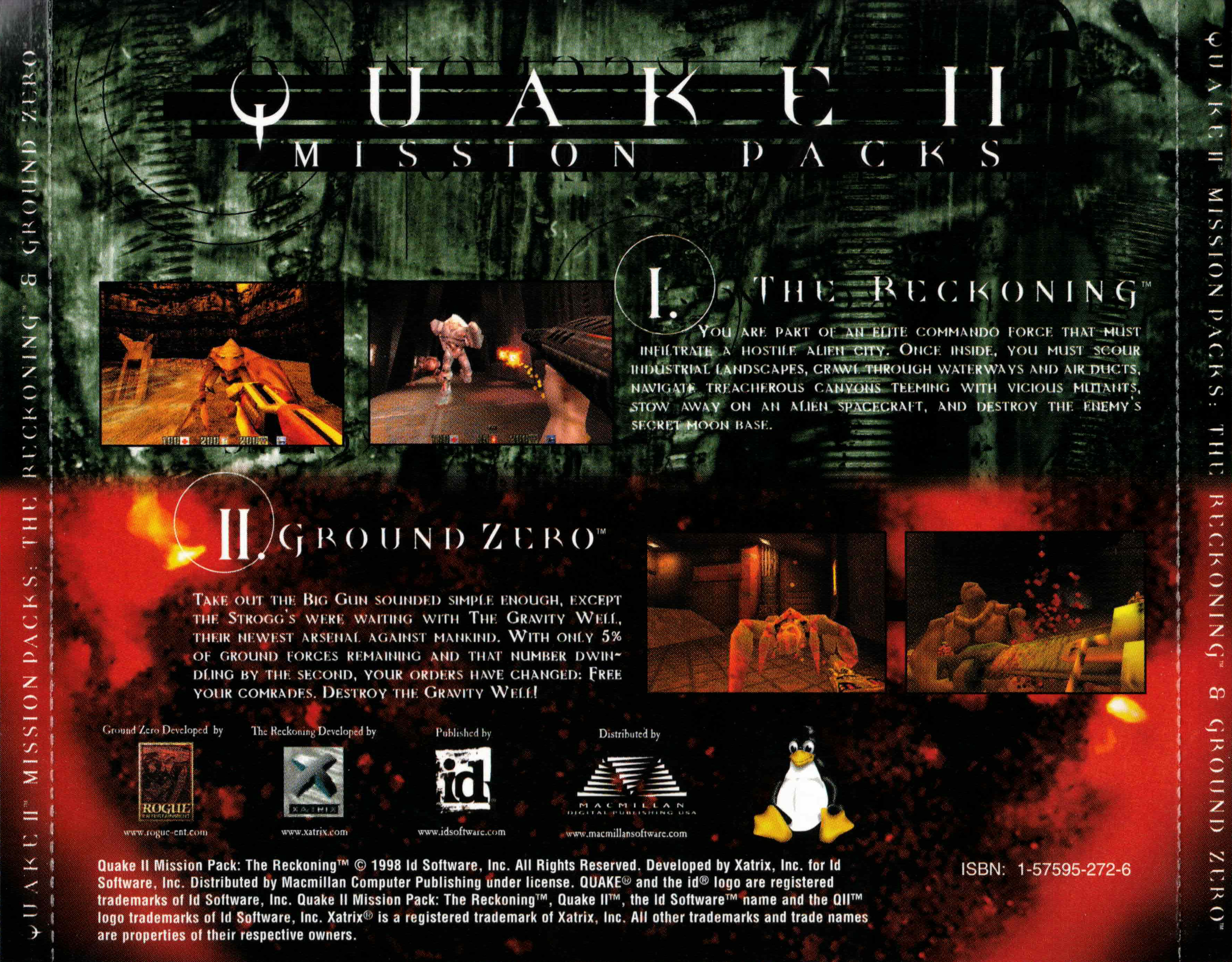 On May 12th 1999, id Software published “Quake II: Quad Damage”, a compilation that included Quake 2 and its two mission packs - The Reckoning and Ground Zero, as well as NetPack I: Extremities.